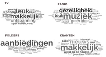 De basishouding ten opzichte van de media is over de hele linie positief, maar wordt per mediumtype anders ingevuld. Videocontent wordt vooral als leuk en makkelijk ervaren, audio scoort met name op gezelligheid, de folder en de kranten bedienen vooral op gemak.